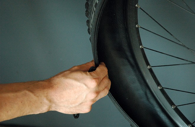 Σε περίπτωση που δεν κάθεται μόνο με την δύναμη των χεριών, χρησιμοποιείστε προσεχτικά τα ειδικά λεβιεδάκια (βλ. φωτό). Αυτή τη φορά τοποθετήστε τα ανάποδα και φροντίστε, όπως πιέζετε τα λεβιεδάκια για να κάτσει το ελαστικό, να μην τσιμπήσετε και σκίσετε τη σαμπρέλα. Μόλις ολοκληρώσετε την τοποθέτηση του ελαστικού, φουσκώστε το μέχρι 20 psi και τσεκάρετε τα πλαϊνά του για να σιγουρευτείτε πως έχει κάτσει σωστά στο στεφάνι. Εφόσον όλα είναι εντάξει, βάλτε την επιθυμητή πίεση αέρα και βγείτε ξανά για ποδήλατο!