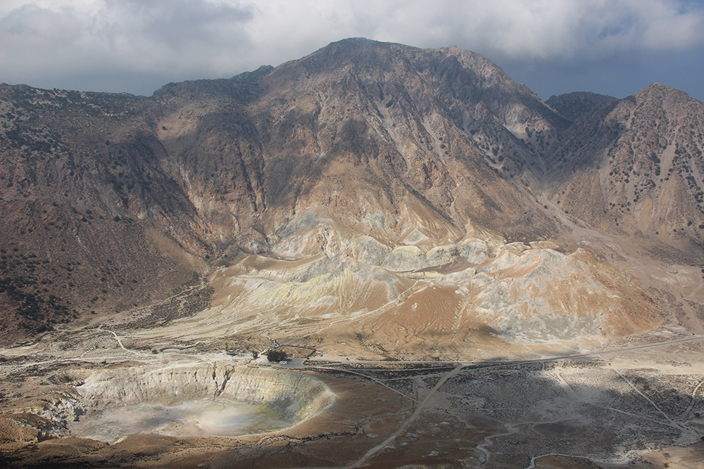 Το επόμενο πρωί πράγματι ξύπνησα στο χείλος της καλδέρας που απλώνεται για τέσσερα χιλιόμετρα. Οι κρατήρες Αχιλλέας, Λογοθέτης, Πολυβώτης και Στέφανος ήταν ευθεία μπροστά μου, στα δεξιά η ψηλότερη κορυφή του νησιού στα 700 μέτρα υψόμετρο, ο Προφήτης Ηλίας και στα αριστερά, «σκαρφαλωμένα» στα βράχια, τα Νικιά.