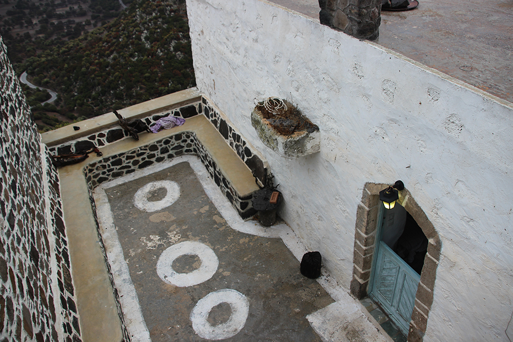 Η μπαταρία του e-bike μου ήταν φουλ φορτισμένη και είχα βάλει τα γκάζια στο τέρμα. Λίγο πριν τα Νικιά υπάρχει η ταμπέλα προς το παλιό μοναστήρι του άι Γιάννη. Αυτό το μονοπάτι δεν υπάρχει στους χάρτες. Είναι το αποτέλεσμα σκληρής δουλειάς δύο φίλων, του Γιώργου και του Lars. Την στιγμή που μπήκα στο μονοπάτι και άρχισα να κατηφορίζω ένιωσα ευγνωμοσύνη, όχι μόνο προς τους φίλους μου αλλά και σε όσους ξοδεύουν τον χρόνο τους, σκάβουν και μετακινούμε βράχια ακολουθώντας τα βήματα ανθρώπων που έζησαν και δημιούργησαν εκατοντάδες χρόνια πριν.