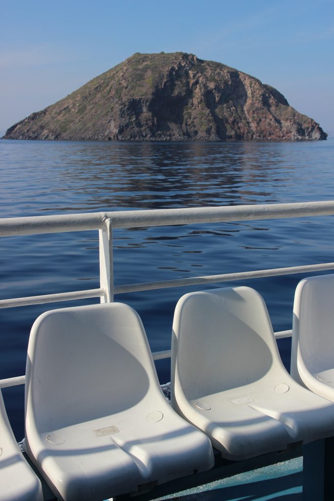 To πρώτο σημάδι που έδειχνε ότι κάπου από κάτω μας βράζει ένα ηφαίστειο φάνηκε στα δεξιά του μικρού καραβιού πριν φτάσουμε στη Νίσυρο. Η βραχονησίδα Στρογγυλή είναι ένας τέλεια σχηματισμένος ηφαιστειακός κώνος που υψώνεται 125 μέτρα πάνω από την επιφάνεια του νερού, ενώ η βάση του βρίσκεται σε βάθος 600 μέτρων. Μετά από λίγο άρχισαν να αχνοφαίνονται τα σπίτια χαμηλά στους Πάλλους.