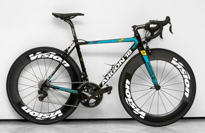 Οι αθλητές της Astana θα χρησιμοποιήσουν τα μοντέλα Gallium Pro, Nitrogen Pro και E-118 Next. Τα αγωνιστικά ποδήλατα της Argon 18 ξεχωρίζουν από τις γαλάζιες και κίτρινες λεπτομέρειες που χαρακτηρίζουν την ομάδα της Astana.