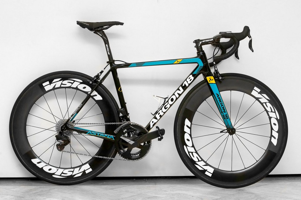 Οι αθλητές της Astana θα χρησιμοποιήσουν τα μοντέλα Gallium Pro, Nitrogen Pro και E-118 Next. Τα αγωνιστικά ποδήλατα της Argon 18 ξεχωρίζουν από τις γαλάζιες και κίτρινες λεπτομέρειες που χαρακτηρίζουν την ομάδα της Astana.