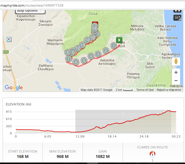 Ανάβαση Λοιπές κατηγορίες: 31χλμ. προεκκίνηση Κεντρική πλατεία Αγιάς προς