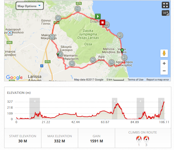 Την 1η μέρα του αγώνα θα γίνει η Ατομική Χρονομέτρηση, 6 χλμ., με εκκίνηση από το Στόμιο και τερματισμός στην Καρίτσα Κισάβου. Τη δεύτερη μέρα θα διεξαχθεί ο αγώνας αντοχής 106 χλμ. με προ εκκίνηση (με συνοδεία) από Στόμιο προς Τέμπη και αφού ολοκληρωθεί η κυκλική διαδρομή γύρω από τον Κίσαβο και περάσει από τα παράλια του Νομού Λάρισας θα τερματίσει στην Καρίτσα.