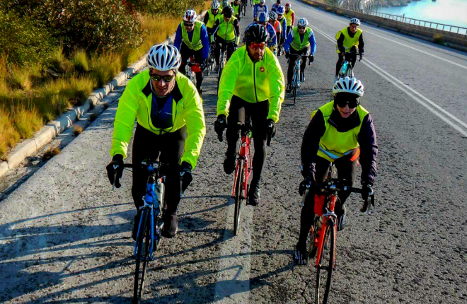 Με μυστικές συμφωνίες δίχως λόγια πολλά, νιώθουμε την ανάγκη του καθενός και ανάλογα επισπεύδουμε εκεί που μπορούμε και πρέπει και χαλαρώνουμε εκεί που δεν μπορούμε και πρέπει! Ακούραστοι οδηγοί, ο Γρηγόρης που ενορχηστρώνει αψεγάδιαστα το ρυθμό, με διαλειμματικά φορτίσιμι και πιανίσιμι (γιατί, για τα δικά μου ποδάρια, όλη η εκδρομή στο φόρτε εξελίχθηκε), ο Θανάσης που «υποφέρει» από πρόβλημα δίσκου, αλλά, θα μπορούσε να μην το έχει καταλάβει κανείς, ο Αλέξης που μειδιά στον ήχο του κούμπωσε/ξεκούμπωσε, αφού ο ίδιος με απλό παπουτσάκι αθλητικό ασταμάτητα πεταλάρει σαν ακούραστο μοτέρ, ο σιωπηλός Στέλιος που στροφάρει δυναμικά και σε εμπνέει να μην το βάλεις κάτω ούτε στα πιο απρόσμενα «τοιχαλάκια». Και ο κορμός της ομάδας, δυο Παναγιώτηδες, ο Νικόλας, ο Μαρίνος, ο Βασίλης, κι εγώ, και σε κάποια σημεία κι ο Γιάννης ο τρίκυκλος κι ο Λάζαρος ο τρέκιγκ. Κατά καιρούς κολλάνε μαζί μας φίλοι και γνωστοί, λέμε καμιά κουβέντα από αυτές τις ποδηλατικές τις ταξιδιάρικες, αν τύχει να ήμαστε σε σημείο με θέα, αλληλοχωνόμαστε οι μεν στις σέλφιζ του άλλου και πάει…λέγοντας και ποδηλατώντας!