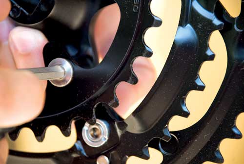 1.β) Τα 2 μεγαλύτερα δισκάκια συγκρατούνται μεταξύ τους με μία βίδα και μία ασφάλεια. Εδώ θα χρειαστούμε ένα wrench for front sprocket nuts για να συγκρατήσουμε την ασφάλεια, καθώς θα ξεβιδώνουμε τις βίδες με το Allen. Καλό θα ήταν να επαναλάβουμε τη διαδικασία με το μαρκαδόρο.