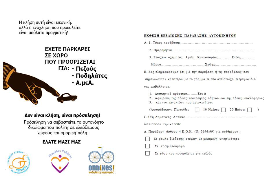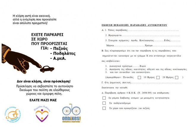 Δίνοντας μια «έκθεση βεβαίωσης παράβασης» προσπαθούν να ευαισθητοποιήσουν τους πολίτες της Κομοτηνής και να τους δείξουν, με τον πιο ευγενικό τρόπο, πως αυτό που κάνουν είναι, στην καλύτερη περίπτωση, παράβαση του ΚΟΚ.