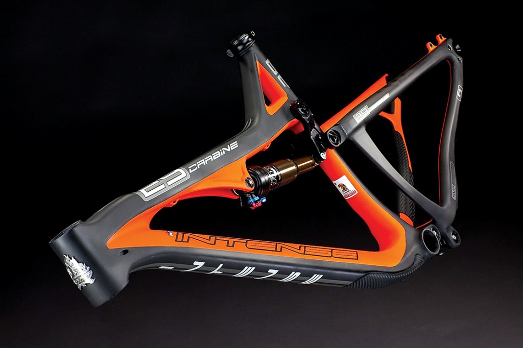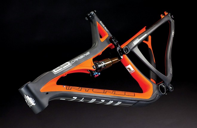 Όπως κάθε μοντέλο της εταιρείας, έτσι και το Carbine 29er ξεχωρίζει αμέσως με την εξαιρετική σχεδίαση και αισθητική του. Για την επιτυχημένη εμπορική του πορεία όμως δεν αρκεί μόνο η εμφάνιση. Το πλαίσιο κατασκευάζεται εξολοκλήρου από υλικό carbon (και το οπίσθιο τρίγωνο), στα πολύ υψηλά standard που μας έχει συνηθίσει η καλιφορνέζικη εταιρεία. Το βάρος του, σύμφωνα με τα λεγόμενα της εταιρείας, ανέρχεται στα 2,6 κιλά (στο μέγεθος Medium) μαζί με το οπίσθιο αμορτισέρ Fox Float CTD Kashima Coat. To Carbine διαθέτει όλα τα σχετικά χαρακτηριστικά της κατηγορίας Trail/Enduro, όπως εσωτερική δρομολόγηση για το πτυσσόμενο παλουκόσελο Reverb Stealth της εταιρείας RockShox, ISCG 05 Tabs στη μεσαία τριβή για χρήση chain guide, και 142x12mm thru-axle στο οπίσθιο τρίγωνο. To head tube του πλαισίου είναι σχεδίασης Tapered για βελτίωση της ακαμψίας του εμπρόσθιου συστήματος του ποδηλάτου, ενώ και η δρομολόγηση των καλωδίων των ταχυτήτων και του οπίσθιου φρένου γίνεται εσωτερικά του πλαισίου. Η βάση στήριξης του εμπρόσθιου σασμάν είναι σχεδίασης direct mount, ενώ η μεσαία τριβή είναι συμβατή με Shimano Press Fit bottom bracket. Χαρακτηριστικό τέλος είναι το ενσωματωμένο προστατευτικό κάλυμμα στον κάτω σωλήνα του πλαισίου, με την ονομασία Intense FLK:GRD.