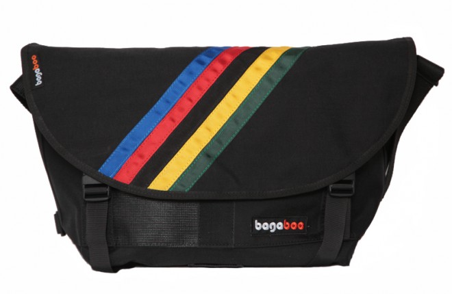 Tαχυδρομική τσάντα: Μαύρη με λωρίδες πρωταθλητή, μαύρη ραφή και λευκό εσωτερικό.