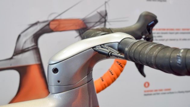 Εντύπωση προκαλεί και η σχεδίαση του λαιμού, με εσωτερική δρομολόγηση των καλωδίων των ταχυτήτων και των φρένων. Όπως απεικονίζεται στην φωτό, ακόμα και με τη χρήση της μηχανικής σειράς Dura Ace R9100, τα καλώδια των ταχυτήτων «εξαφανίζονται», πλην ενώ σημείου για την τοποθέτηση των σχετικών ρυθμιστών.