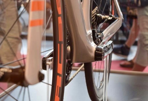 Στην περιοχή της μεσαίας τριβής, ο επάνω σωλήνας δένει ασύμμετρα, ώστε να οδηγεί τη ροή του αέρα στην αριστερή πλευρά, απ’ όπου απουσιάζουν η αλυσίδα, το σασμάν και τα γρανάζια της κασέτας, για τη μείωση της αεροδυναμικής αντίστασης.