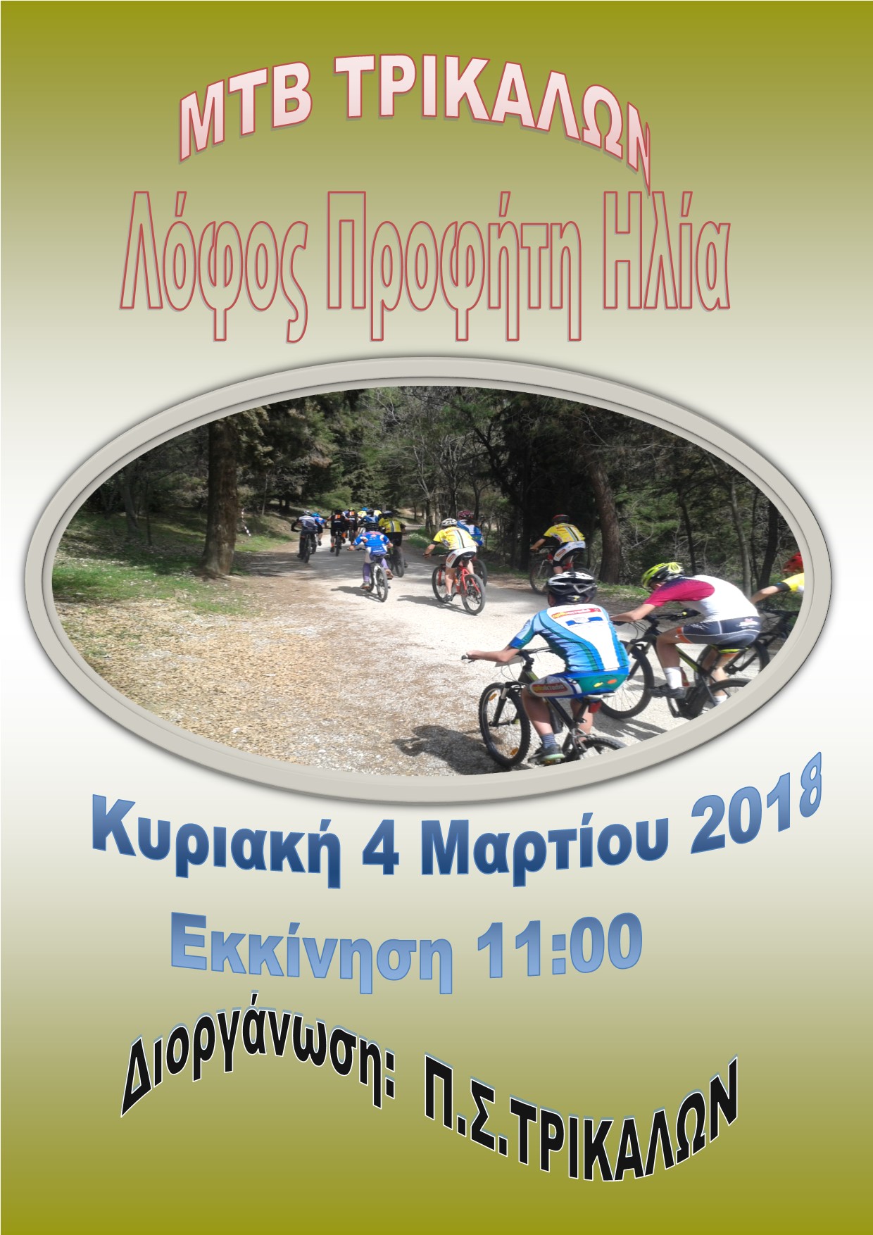 Ο Π.Σ.ΤΡΙΚΑΛΩΝ την Κυριακή στις 4 Μαρτίου 2018 διοργανώνει στον λόφο προφήτη Ηλία (ζωολογικός κήπος Τρικάλων) διασυλλογικό Αγώνα Ορεινής Ποδηλασίας με την ονομασία ΜΤΒ Τρικάλων, για τις  6 παρακάτω κατηγορίες:  Γυναικών – Παίδων – Κορασίδων –  Παμπαίδων – Πανκορασίδων – Μίνι (μικρά – μεγάλα).