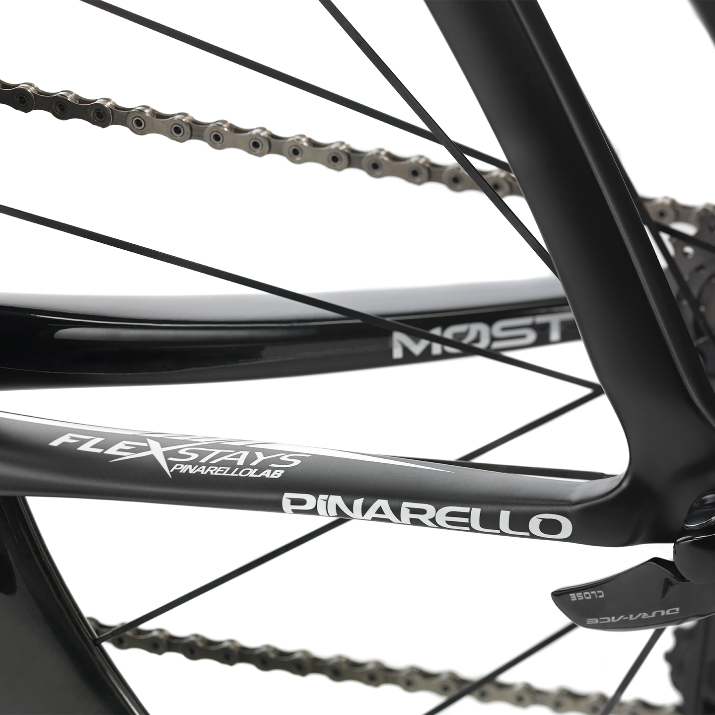 Τα chain stays του πλαισίου DOGMA FS έχουν σχεδιαστεί, ώστε να επιτρέπουν σχεδόν 10mm κάθετη εκτροπή και να εξασφαλίζουν την απαιτούμενη πλευρική ακαμψία του οπίσθιου τριγώνου για αγωνιστική οδήγηση.