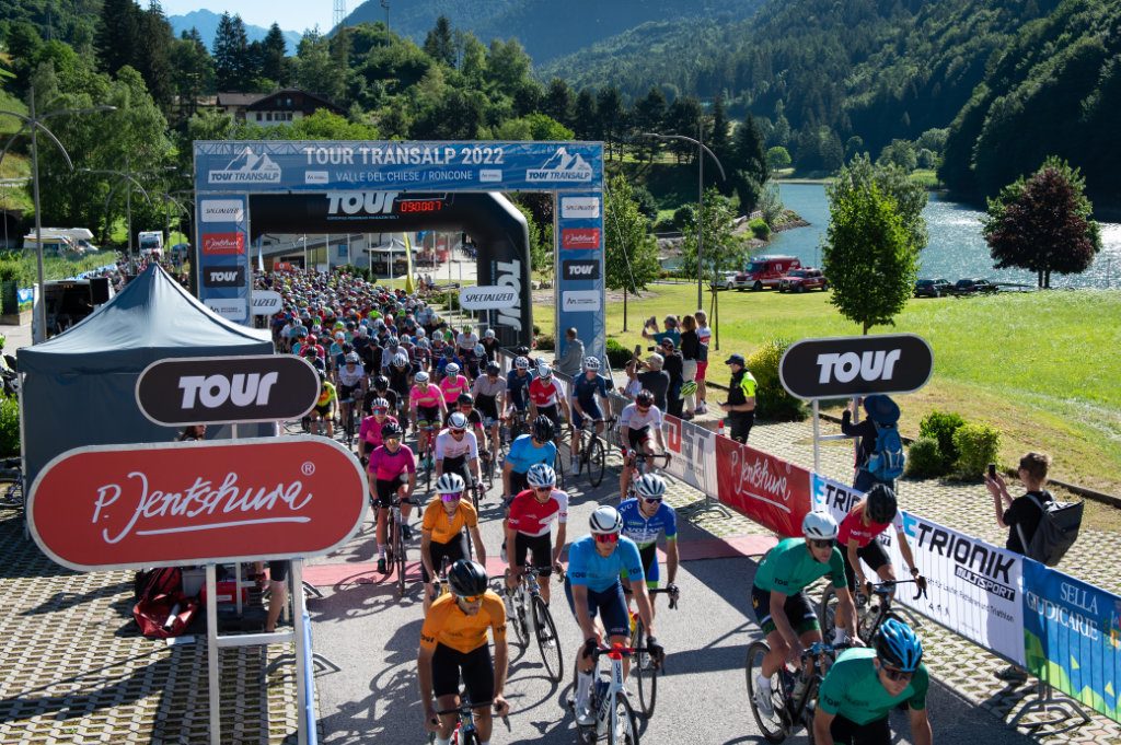 Φέτος, ύστερα από δυο χρόνια αναγκαστικής απουσίας λόγω της πανδημίας, το TOUR Transalp 2022 ξεκίνησε πανηγυρικά στις 19 Ιουνίου από Λίμνη Ρέσια (Lake Reschen) με θέα τον βυθισμένο πύργο της λίμνης (εκεί που βρισκόταν ως το 1950 το χωριό Κούρον), στο νότιο Τιρόλο. Κάνοντας σχεδόν έναν ολόκληρο γύρο της λίμνης, οι ποδηλάτες βγήκαν από την Ιταλία, μπήκαν στην Αυστρία και από εκεί κατευθύνθηκαν προς το Zernez, στην Ελβετία.